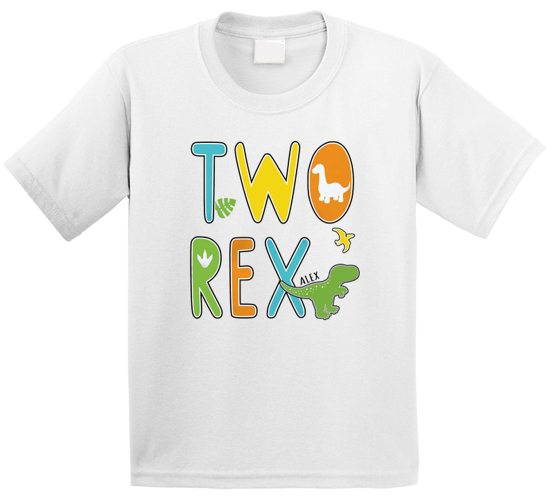 This Two Rex Alex Birthday Front Print T Shirt is one of our favorites, it won’t be around forever so order yours here today!